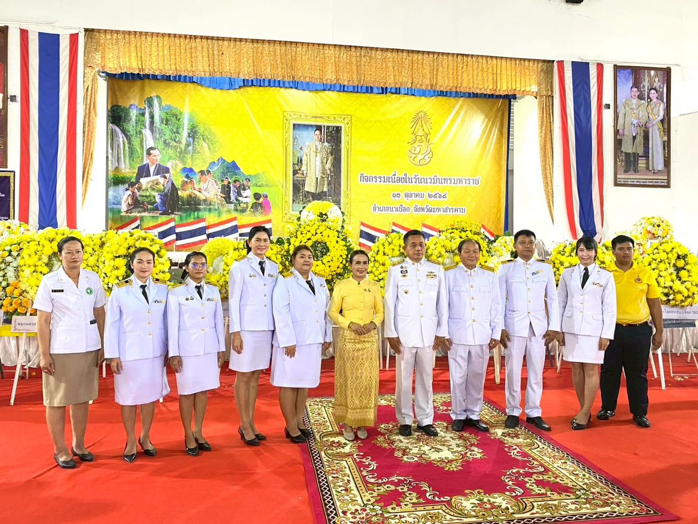 วันที่ 13 ตุลาตุลาคม 2568 วิทยาลัยเทคโนโลยีพณิชยการมหาสารคาม นำโดยนายทวี สิทธิจันทร์ เข้าร่วมพิธีวางพวงมาลา กิจกรรมเนื่องในวันนวมินทรมหาราช ณ หอประชุมอำเภอนาเชือก จังหวัดมหาสารคาม |