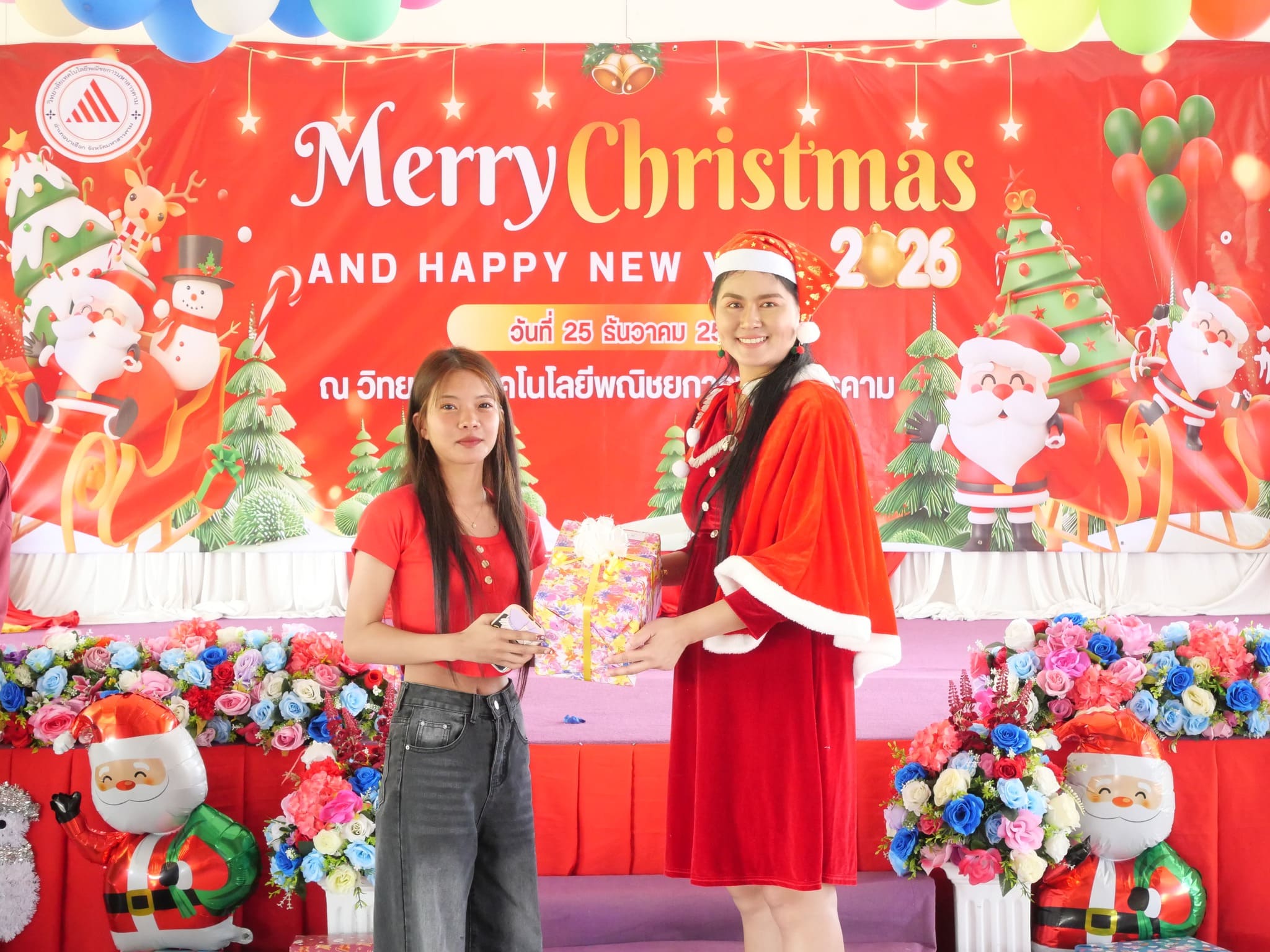 วันที่ 25 ธันวาคม 2568 วิทยาลัยเทคโนโลยีพณิชยการมหาสารคามได้จัดกิจกรรม วันคริสต์มาส และจับสลากของขวัญปีใหม่ โดยได้รับเกียรติจาก นายยอด ชนไพโรจน์ ผู้รับใบอนุญาตเป็นประธานในพิธีเปิดงาน ภายในงานเต็มไปด้วยรอยยิ้มและเสียงหัวเราะจากนักเรียน นักศึกษา